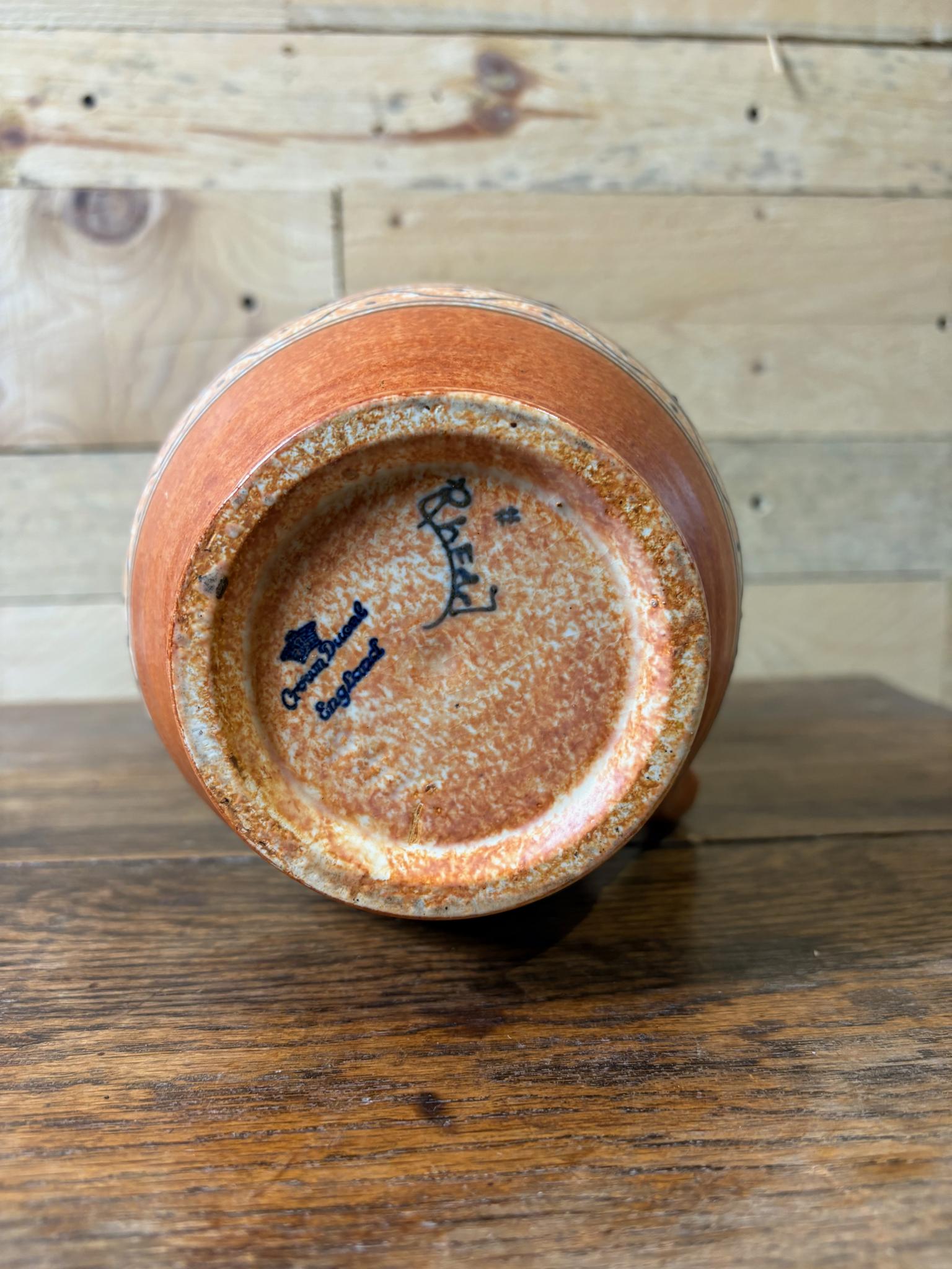 Why we love it: Bold Deco colour, tactile tube‑lining and an elegant handled form—an excellent display piece for Rhead and Crown Ducal collectors alike.