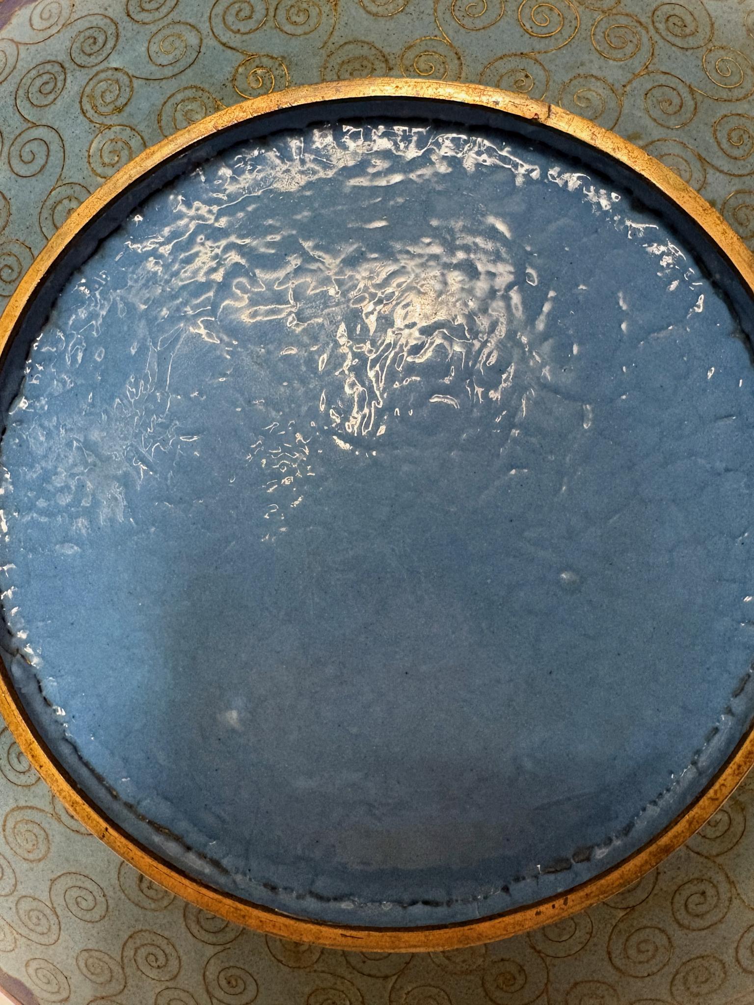 Context: Cloisonné (shippo-yaki) became one of Japan’s most admired export arts in the Meiji era. Workshops in Kyoto and Nagoya perfected hair‑thin gilt wires and jewel‑like enamels, often borrowing motifs from textiles—exactly the mix of hexagons, asanoha, seigaiha and other patterns seen here. Wall plaques/chargers like this were made specifically for Western interiors.